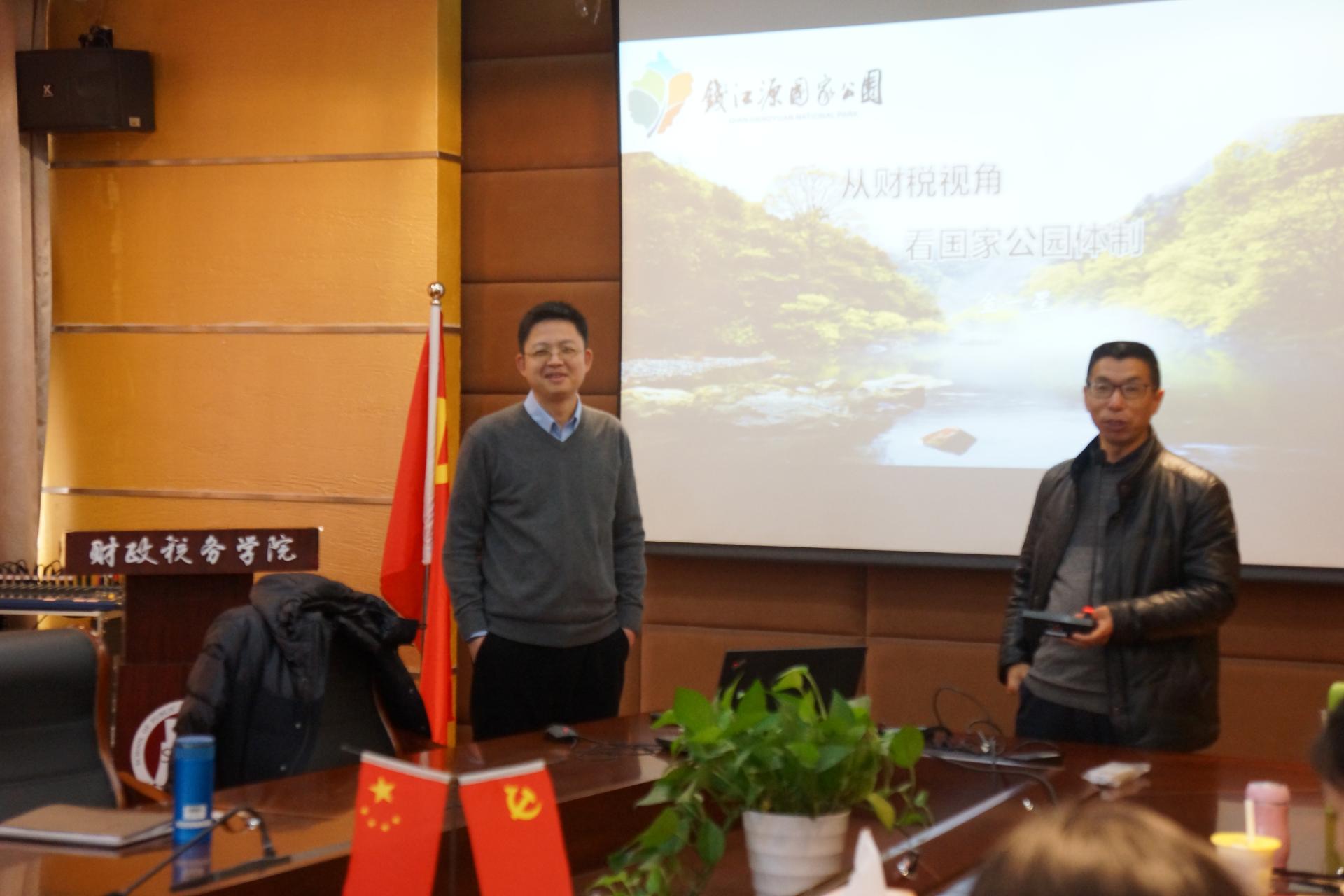 2017年12月22日星期五下午一点半在学院楼307,浙江省地方税务局政策法规处处长金一星做了一场主题为“从财税视角看国家公园体制”的讲座,全体税务一年级研究生到场聆听。