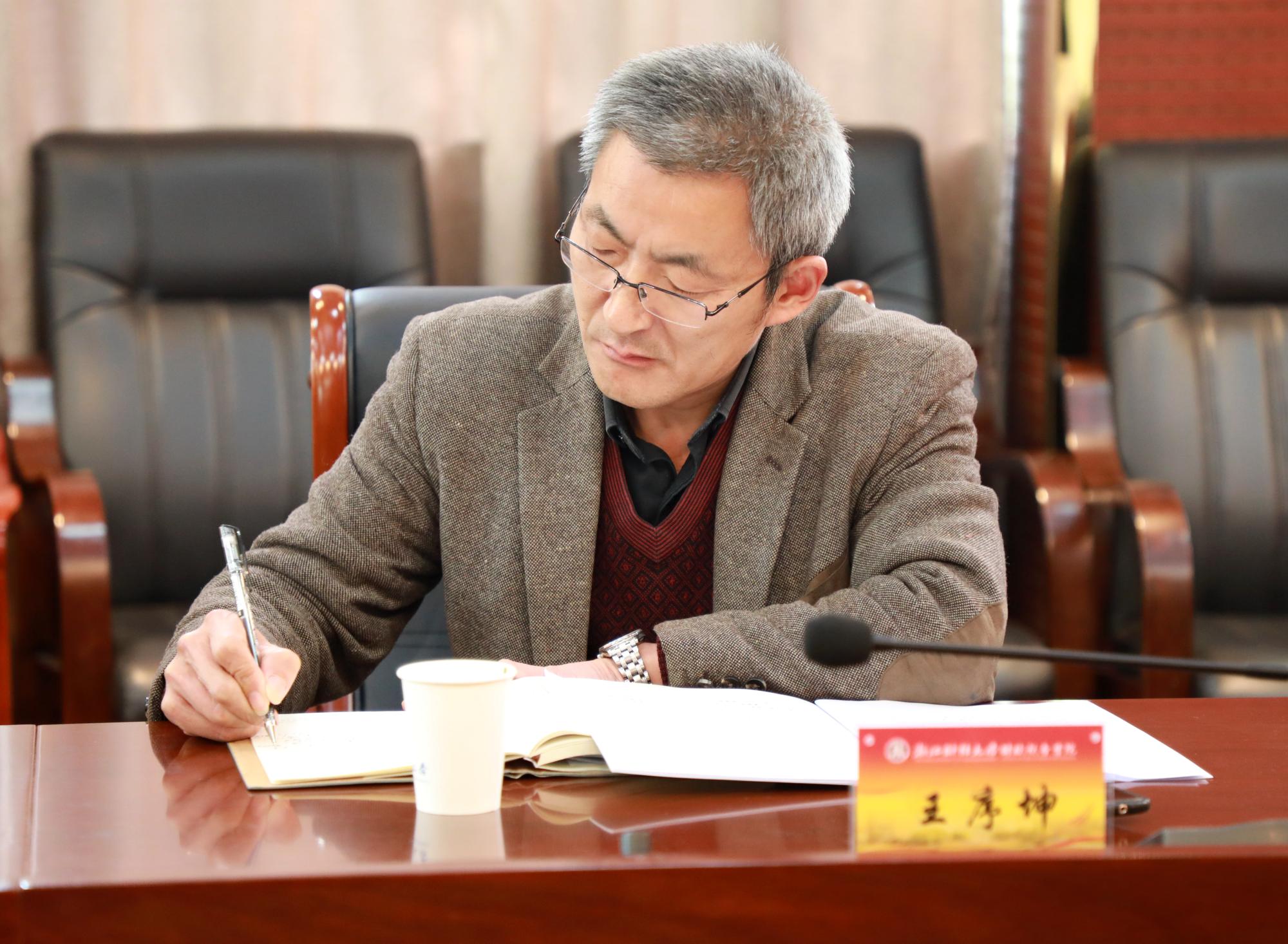 最后,纪委办公室主任、监察处处长王序坤发表讲话,高度肯定了分析会的筹划准备及学院过去一年领导班子党风廉政建设情况。王序坤表示,营造良好的政治生态要坚持一条“全面从严治党”的主线,倚重“两个责任”实现点线面统一,实现三种类型监督共同发力,提前研判,形成一套可防范、可管控、可规避的机制。同时,王序坤从如何对待风险增量问题、一岗双责落实、思政课程到课程思政、纪委监督强化等方面提出观点与思考,帮助学院推进后续党风廉政建设。