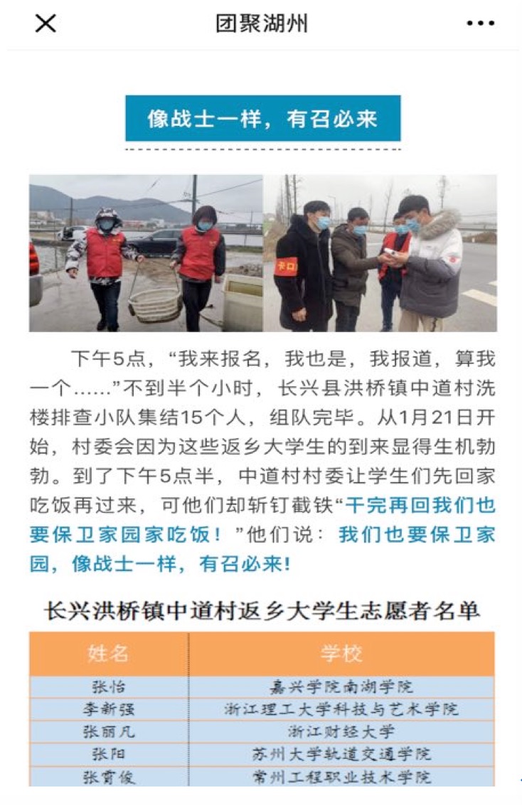 会议结束后,各支委会党员同志分别履行各自职责,积极号召支部党员同志参与到本次党日活动中来,利用可利用资源,在保护好自身安全的情况下,承担起党员使命,为抗击疫情尽一份力量。截止2020年2月17日,支部党员们纷纷行动,寻找不同渠道为抗击疫情捐款捐物;部分党员同志更是抓住机会,积极参与到地方志愿服务中去。支部党员赵梦婷同志通过校友会平台为家乡温州市抗疫情前线捐助了300元,她说希望这点微薄之力可以帮助疫情严重的温州战胜疫情。除此之外,支部党员毛浩辉、潘婷婷、熊陈郁、王童晶同志通过“北京新阳光慈善基金会”网络平台为武汉抗疫情前线的医护人员捐助医用口罩,为武汉加油!支部党员张丽凡同志早在1月21日就主动加入到家乡长兴洪桥镇中道村返乡大学生志愿服务中去,为村辖区内各个小队进行大量信息录入、排查工作。而支部党员章倩宁同志主动参加浙江安吉昌硕街道卡点值班志愿服务,在一线为进出人员测量体温,登记,并探访居家隔离人员。