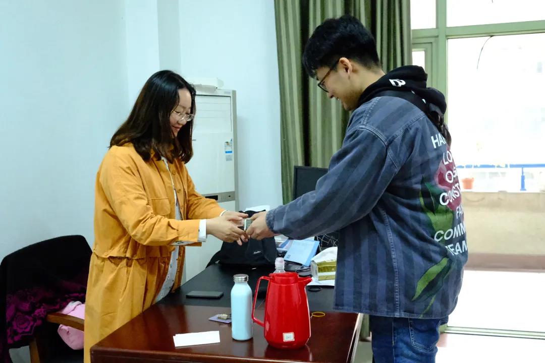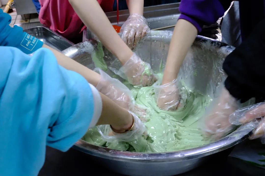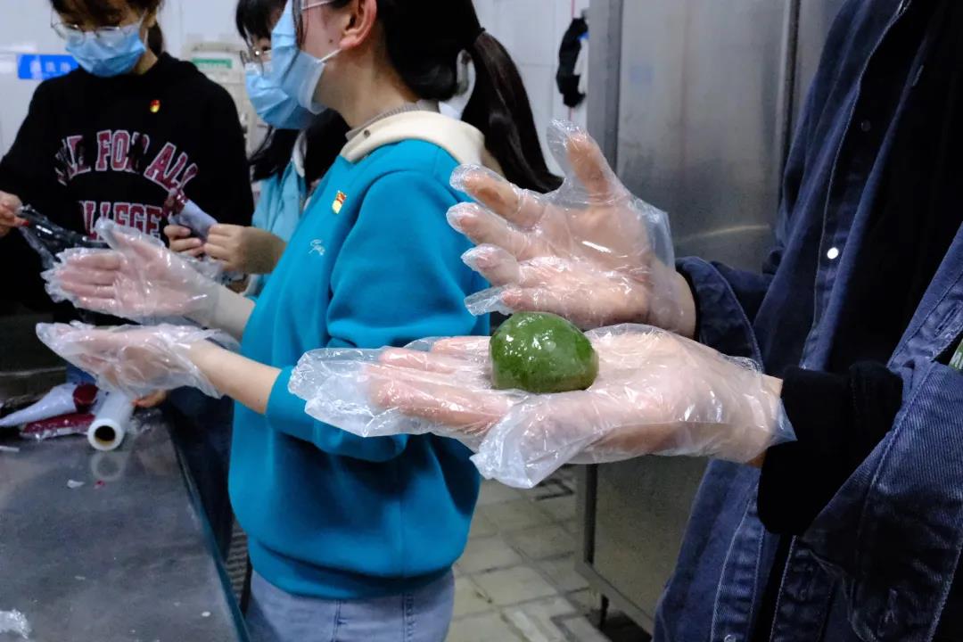 与此同时,学生第四党支部“廉”络员们相互协作,将包好的团子放入提前准备好的模具中,印刻上“清”、“正”、“廉”、“洁”字样,赋予青团廉洁修身、笃行清廉的深刻寓意。最后,大家将蒸熟后的青团送到师生手中,本次活动落下了帷幕。