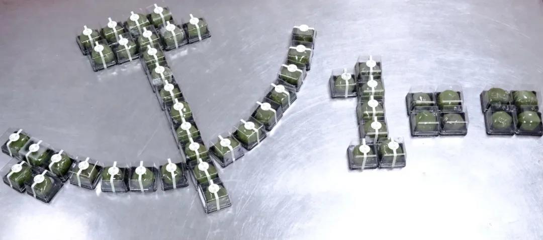 活动伊始,指导老师向大家讲解了青团制作知识,并亲手演示了青团的制作流程。在老师的指导和示范下,党员同志们动手体验,现场体验青团制作过程。为了庆祝建党百年,学生第三党支部党员们将精心包装的青团摆成了“党徽”+“100”的图形。