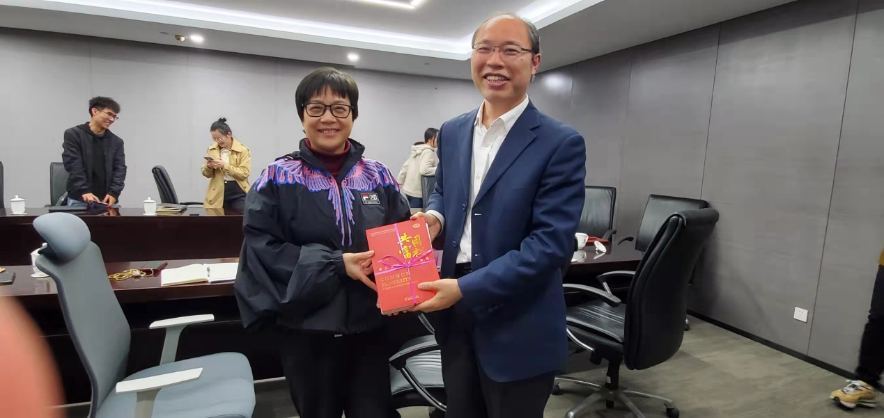 最后,余丽生向钱塘区财政局赠送了地方财政研究院研究成果《共同富裕:浙江实践的典型案例》等书籍。