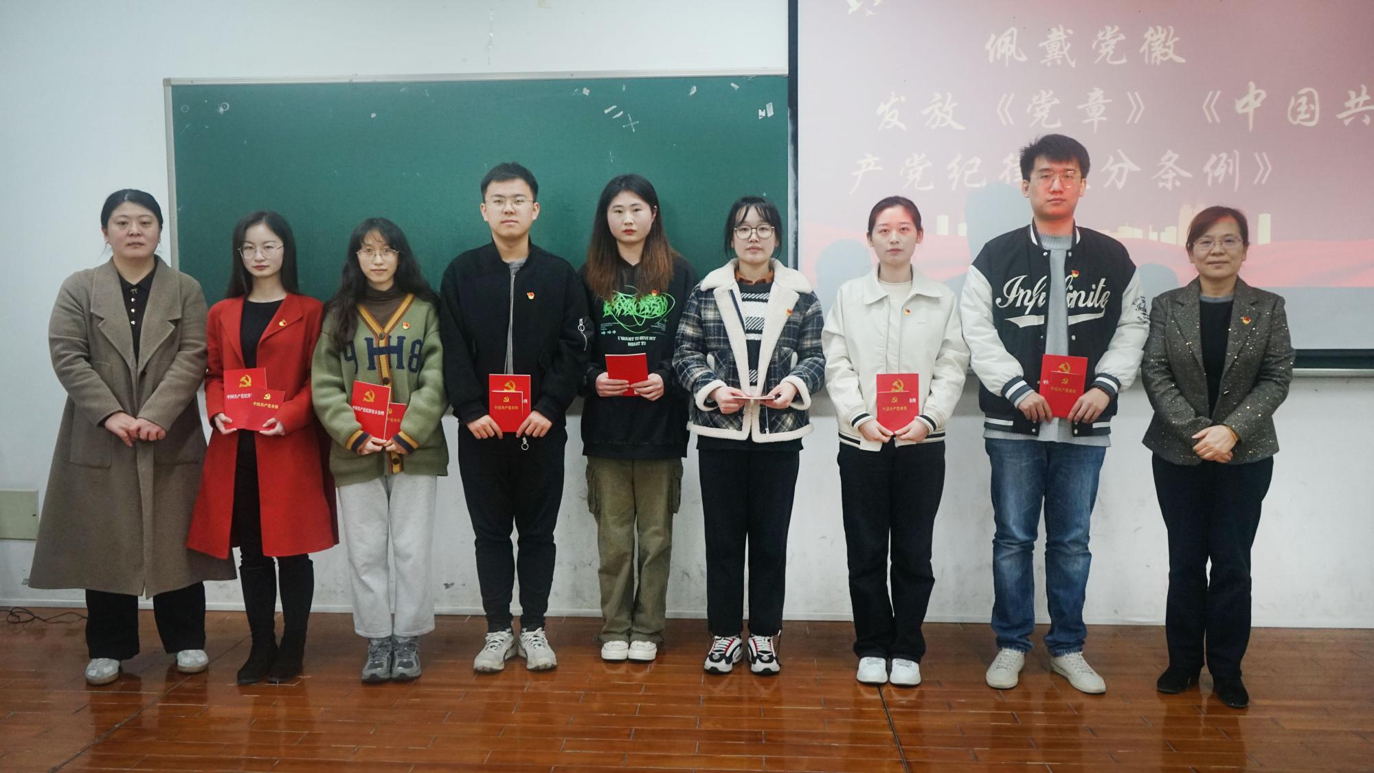 党委组织全体新党员在学院楼102教室开展新党员入党宣誓仪式。学院党委书记童玉玲,专职组织员胡卓文以及全体新党员参加本次仪式。