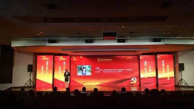 习近平总书记强调,有多大担当才能干多大事业。在本次微党课比赛中,20位意气风发的党员参赛者以“担当”为主题,激扬文字,深情并茂地讲授党课。有的选手从小我出发,以杰出的浙财教职工与学子为例,向在场观众诉说了生活在我们身边满含正能量的党员故事。有的选手从热点时事解读入手,融入生动活泼的形式,通过短小精悍的语言,传递党中央鼓舞人心的力量。