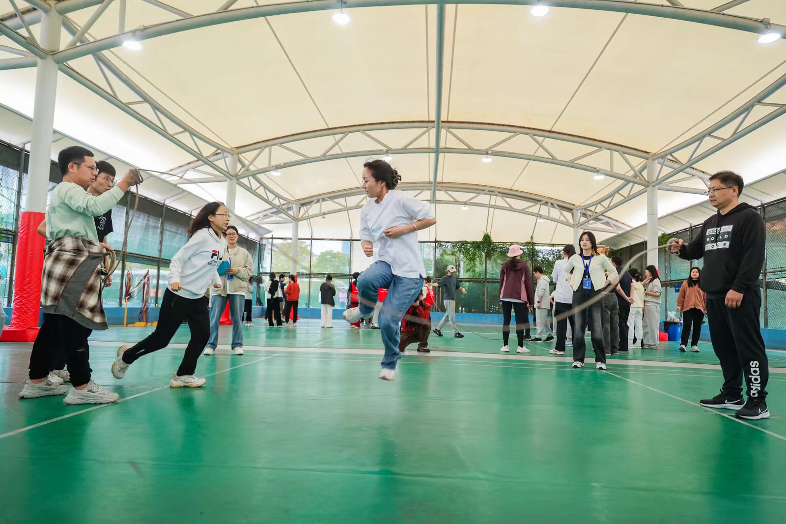 此次长绳连跳健身活动的成功举办,不仅为教职工提供了一个展示自我、挑战自我的平台,更是激发了教职工的活力和团队精神。学院分工会将继续秉持“以人为本,服务教职工”的宗旨,举办更多丰富多彩的文体活动,为教职工的身心健康和学院的和谐发展贡献力量。