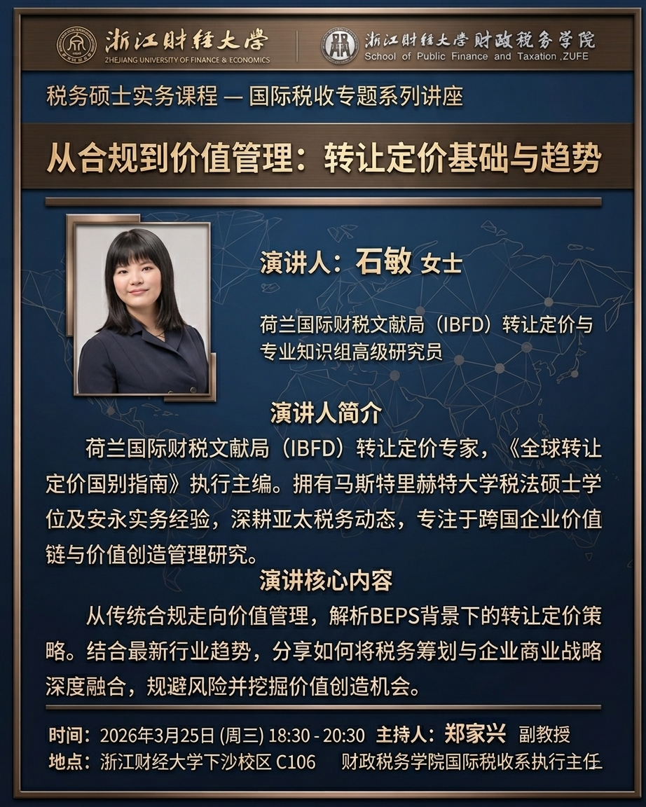 讲座预告 | 从合规到价值管理:转让定价基础与趋势