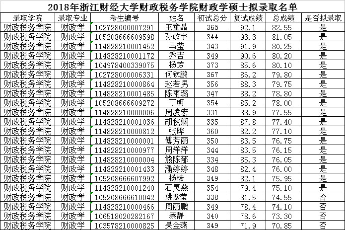2018年禁漫天堂 财政学硕士拟录取名单