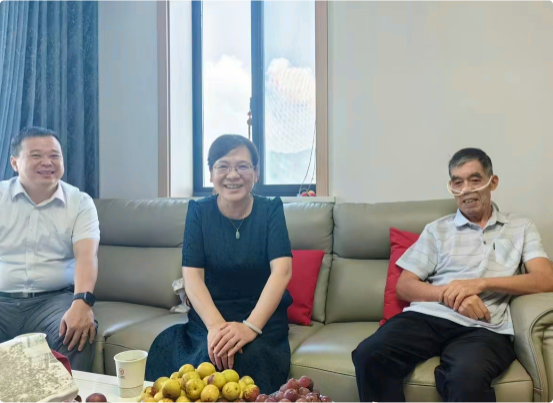 第一届毕业生潘国田校友,送上学校50周年校庆邀请函以及校友纪念品。潘国田校友深情回忆了在学校的点点滴滴,感恩老师们的培育,感谢母校的学习经历为其事业发展打下了坚实基础。