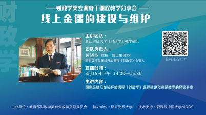 高效、有序地开展在线教学,既是疫情防控期间教学工作的重要举措,也是深入推进课堂革命和“互联网+”教学改革的重要契机。此次活动主要面向各位从事财政学类专业教学的一线教师,所分享的经验做法对于开展慕课(MOOC)、SPOC和各种线上线下混合式教学等教学改革有着重要参考价值。