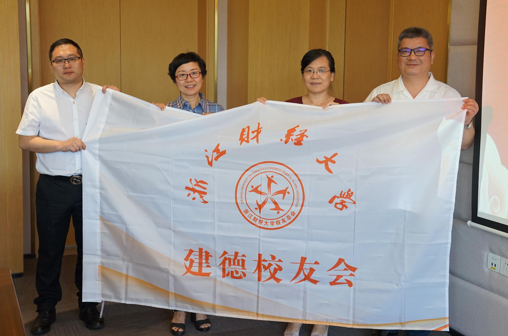 建德校友会理事会增补名单。校长钟晓敏、校友总会常务副秘书长韩玲珑、党校办副主任张成亮分别向新增补的建德校友会理事会成员颁发聘书。童玉玲书记向建德校友会授旗。