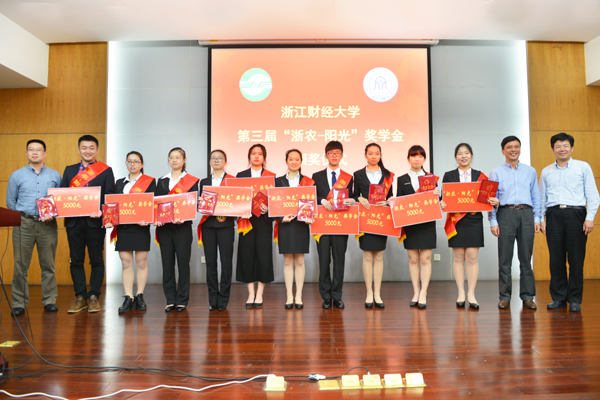 设立“浙农•阳光”奖学金的宗旨,向获奖的同学表示衷心祝贺,希望更多的财大学子能够到浙农工作。
