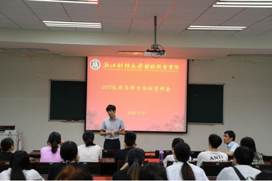 张帆老师就税务师班下一步的具体安排进行了介绍,指出税务师班是在省税协的指导和支持下创立的,入选本方向班的学生,需要按照原专业规定的培养方案和学分要求来修读相关的课程,同时再参加本方向班规定的相关课程。这是对我们学院现有的税务人才培养的补充,也是进一步落实产学研综合培养新尝试。