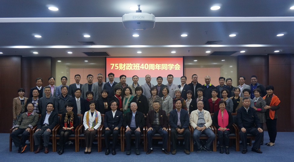 院长沈玉平、党总支书记吴利群,校社会合作处副处长、校友办副主任李晓峰,我院党总支副书记杨小恩和75级财政班班主任王士达出席了此次同学会,46位75级财政班的校友参加了同学会。
