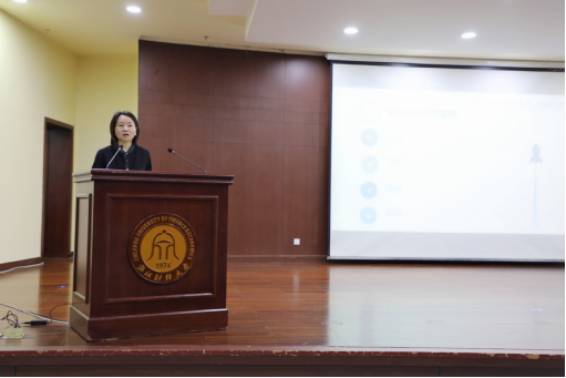 接着,叶宁老师对毕业论文的写作规范和注意事项进行了详细深入的指导。她强调“好的选题是成功的一半”,鼓励同学们尽早启动论文选题工作,可以通过同学讨论、文献查看、查阅书籍等方式寻找自己感兴趣的主题,而后与导师商讨确定最终选题。为方便大家查询数据和资料,她给同学们推荐了数据库。同时,叶老师也提醒大家在写作时应该注意格式,仔细阅读学校规定文件,按要求写作。