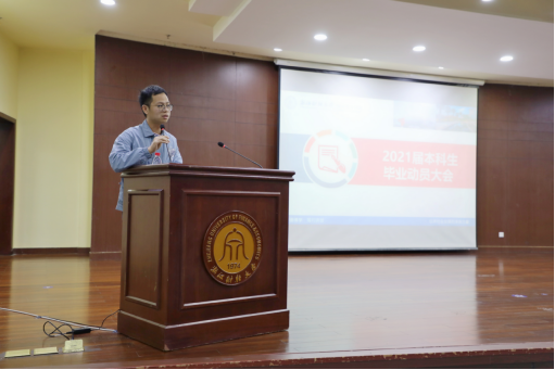 教学副院长童光辉、教师代表叶宁、学生办主任李永涛、教学办主任吕涛出席,教学秘书方梦澜主持,全体2021届毕业生参加了此次动员大会。