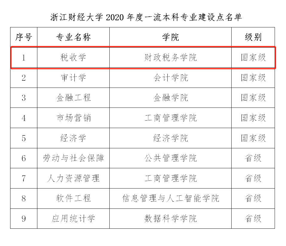 财政学、税收学两个专业双双入选国家级一流本科专业建设点。
