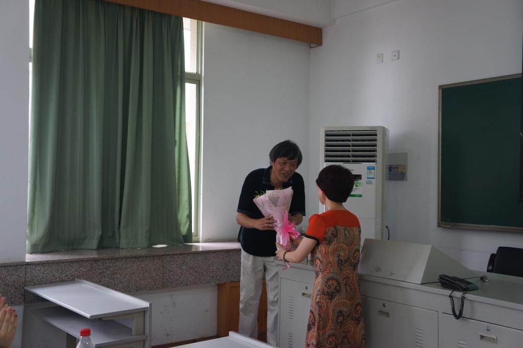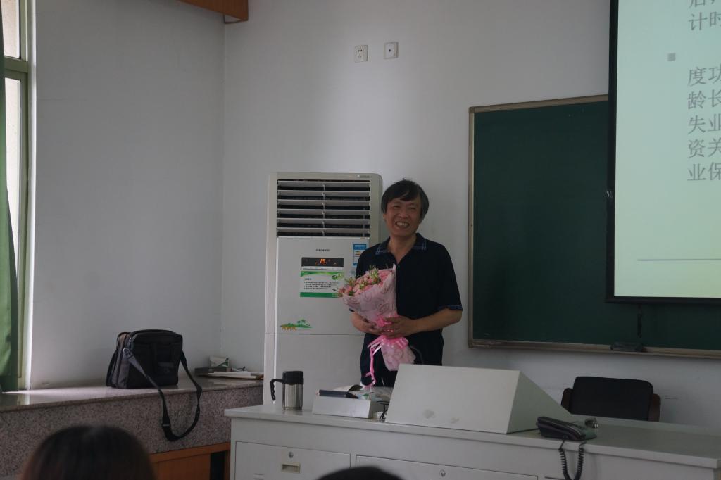 在上课前5分钟,学院党总支书记吴利群老师、劳动与社会保障系主任黄志岭老师和教学办、行政办工作人员特意到上课教室为张老师献上鲜花,表达了学院对他的感谢和崇敬之情。