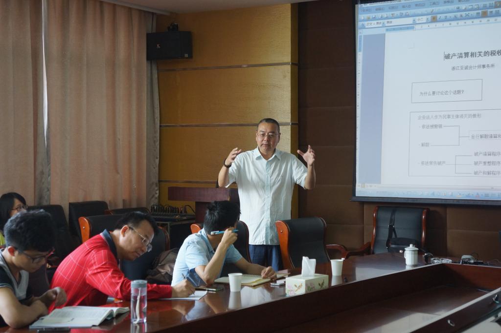 报告伊始,陈华杰老师就提出了“为何要讨论‘破产清算相关的税收债权’”这一问题,以此为线索,陈华杰老师说明了破产清算过程中所涉及到的复杂精妙的税收债权问题。陈老师告知大家,破产清算是现在社会中极为普遍的现象,由于企业在清算过程中已经违背了会计准则中持续经营这一假设,从而导致很多会计准则在破产清算中无法适用,这也是如今公司在破产清算中存在大量不规范行为的根本原因之一。因此,破产清算过程中的税收债权问题就显得特别重要。陈老师授课生动活泼,结合了大量工作中的案例向大家深入浅出地介绍了企业破产清算程序中税收债权的分类、经营期税收债权和清算期税收债权、税收主债权和税收从债权以及企业破产清算程序中税收债权的申报等问题。通过这次讲座,大家对税收债权以及企业破产清算问题有了一个全新的认识。