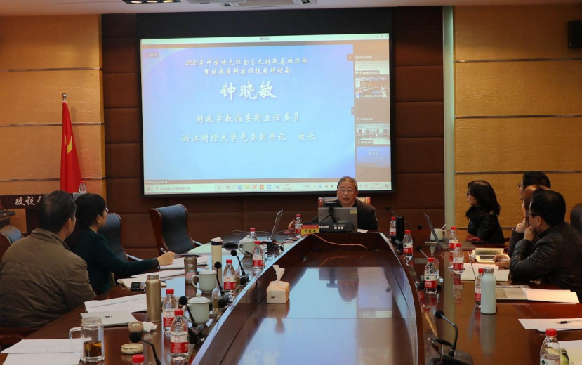 班子成员、财政学科部分教师参加视频会议。