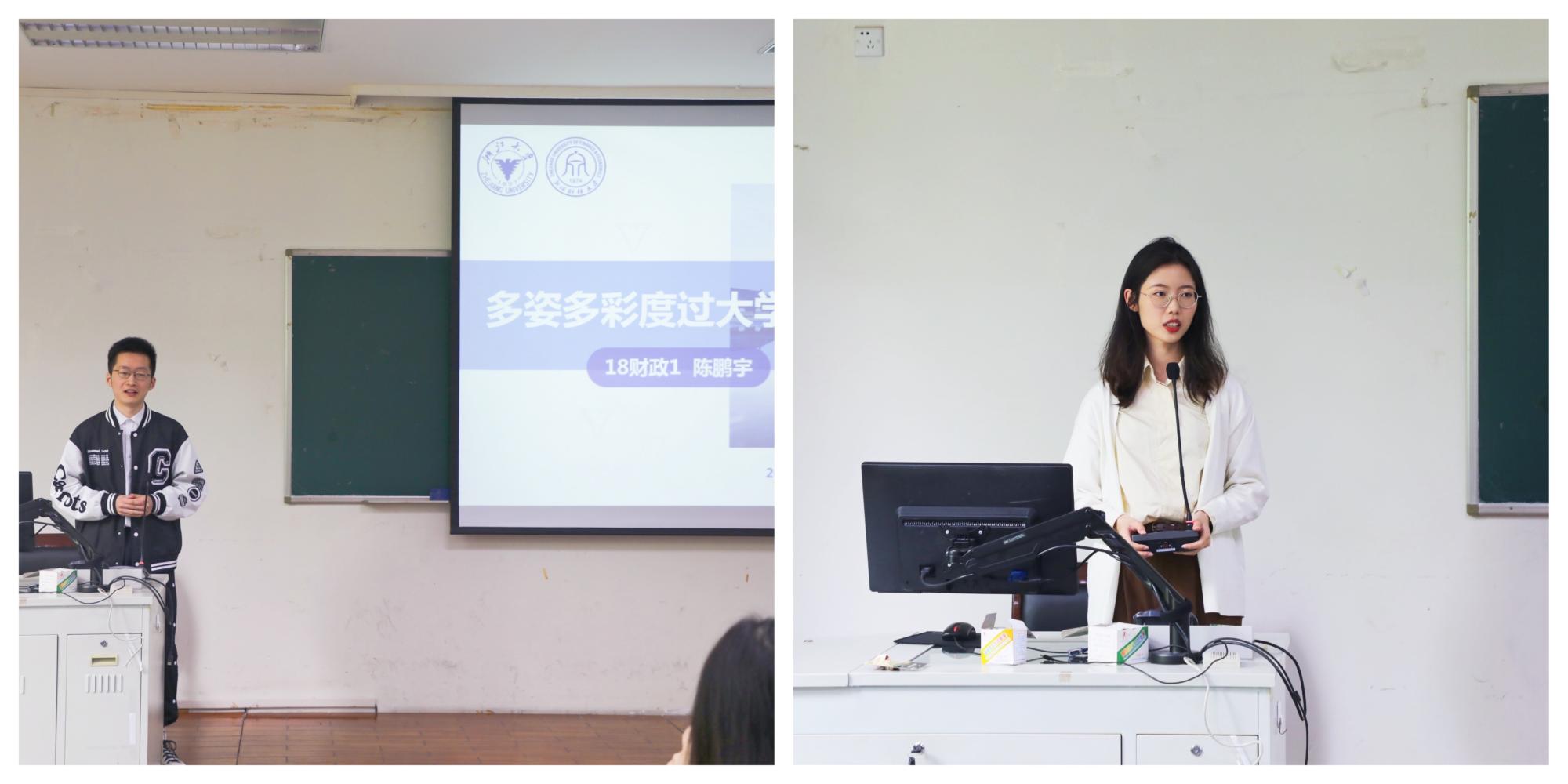 随后,凌晨向数智财政创新班的同学们介绍了两位主讲人,陈鹏宇成功考取了浙江大学研究生,张樱拿到了新加坡南洋理工大学、伦敦大学学院等多所名校的offer,两位同学结合亲身经历为同学们分享了相关经验并提出了宝贵建议。陈鹏宇指出大学期间不仅要专业知识、学科竞赛“两手抓、两手硬”,勇于尝试新事物,乐观面对挫折挑战;还要多与师长沟通交流,结交志同道合的朋友。同时他认为,选择与努力一样重要,大家应时刻保持清醒,做出合适的选择。张樱强调出国读研需要尽早做好规划,多关注了解意向学校的条件和要求,重视专业知识和核心课程的学习,并在前期打好英语基础,为后期备考托福、雅思做好准备。同时大家还需利用好课余与假期时间,参加与专业相关的实习,锻炼实践能力。