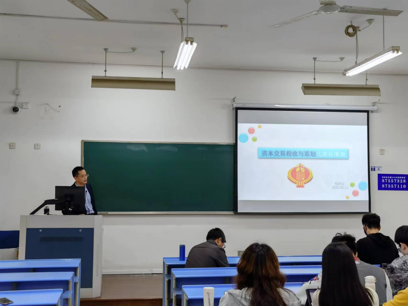 税务专硕社会导师包关云老师为2021级税务专硕学生作了题为“股权激励税收政策研究”的讲座。讲座由税务专硕项目负责人董根泰教授主持。