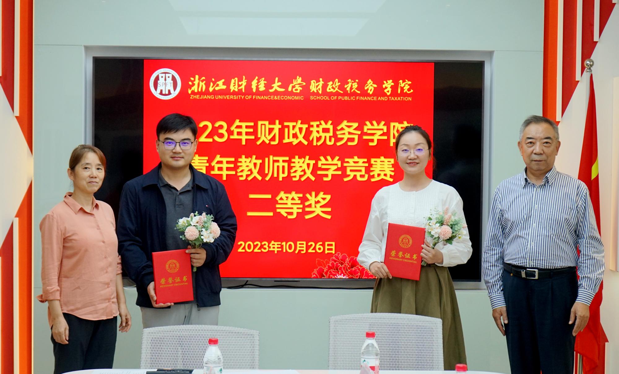 比赛结束后,现场还举行了颁奖典礼,财税学院院长司言武教授宣布了比赛结果,各位评委老师为获奖教师颁发获奖证书并送上鲜花表示祝贺。教务处副处长厉国威在总结发言中,充分肯定了财税学院在教学方面的举措及青年教师的能力,期望未来青年教师可以不断学习,砥砺奋进,不断推动学校教学事业的发展。校督导组组长崔大树则提出了一个建议,希望财税学院青年老师进一步在课程内容、表达及PPT制作方面不断打磨,在今后学校比赛中取得更好成绩。孟泽红教授为各位青年教师提供宝贵经验:在自己最满意的一节课后不断反思自己,总结经验,寻求突破,超越自己。最后,司言武院长表示,财税学院将继续开展相关教学比赛,兼顾学科建设和教学建设,打造禁漫天堂