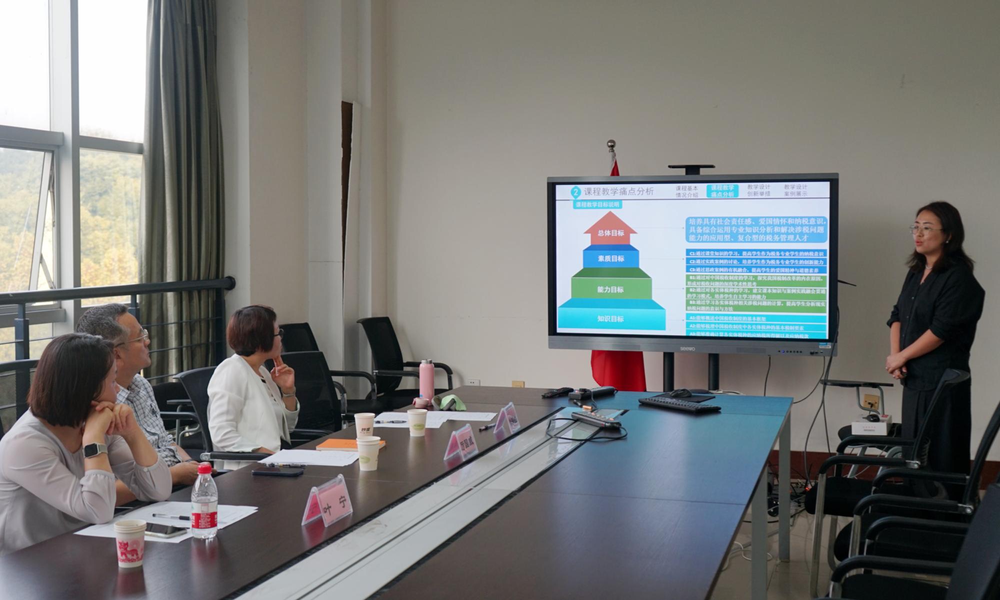 本次大赛,青年教师们分为两组进行比拼。在比赛中,青年教师们教态自然、声音洪亮、激情四溢,概念表述准确、清晰,教学内容连贯、新颖,分别从《消费税》、《税务违法行为及法律责任》、《<国际税收协定实务与案例>教学汇报》、《外部性的经济分析》、《中国税制》等课程主题进行自己的教学风采展示,无不展现着过硬的专业素养与饱满的教学热情。评委们充分肯定青年教师优秀的表现,并从教学方式、教学内容、教学进度及参赛要点等方面提出了可行性建议及更高的要求,帮助青年教师们提高其专业素质及能力。