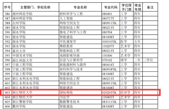 申报的国际税收专业成功获批。