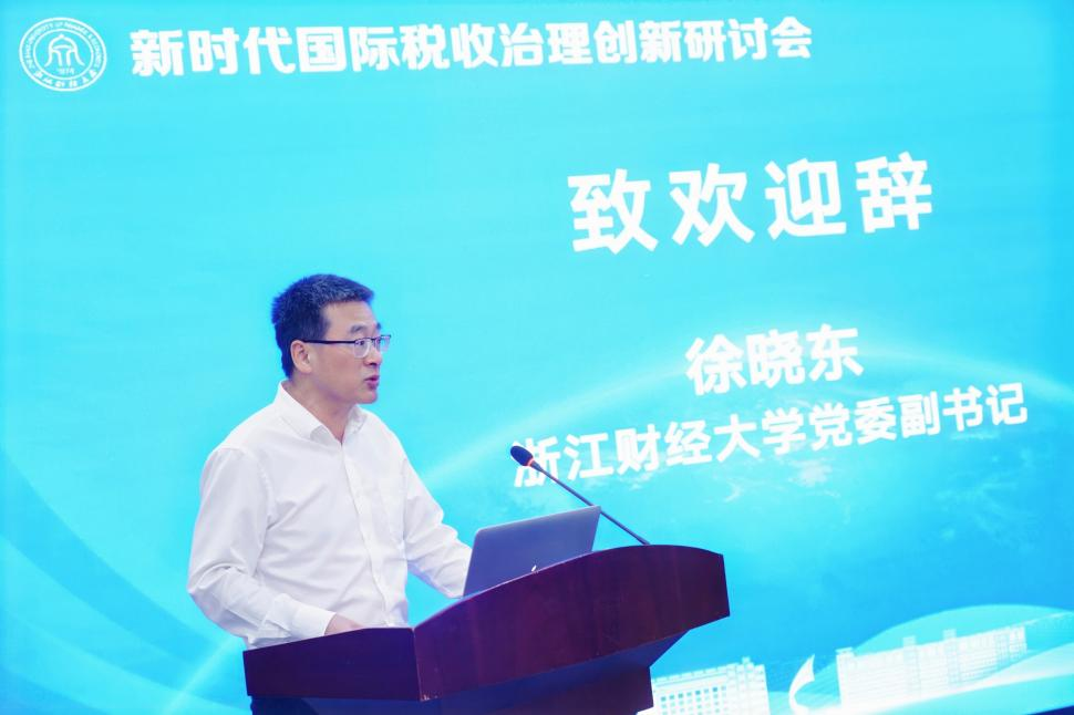 和中国税务杂志社《国际税收》编辑部、浙江省国际税收研究会联合主办的“新时代国际税收治理创新研讨会”在学校下沙校区成功举行。校党委副书记徐晓东,中国税务杂志社副总编辑程雪松,浙江省国际税收研究会会长劳晓峰等领导和专家出席研讨会。来自高校、科研机构、税务部门及企业的百余位专家学者和硕博研究生参加会议。开幕式由学院院长付文林教授主持。