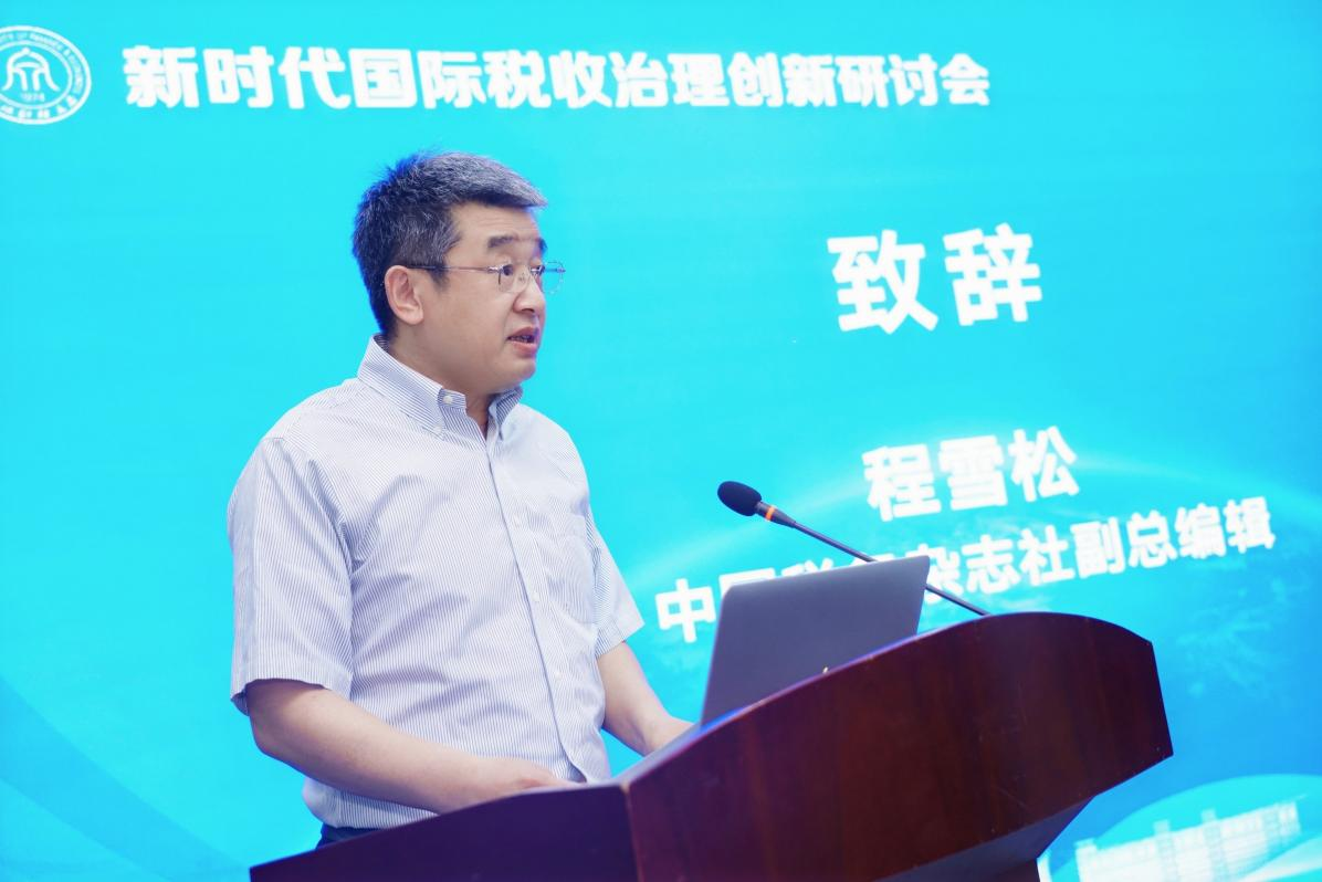 程雪松在致辞中对各位嘉宾拨冗参会表示热烈的欢迎和衷心的感谢。他指出,当前国际税收格局正处于规则重塑和治理体系深刻变革期,本次研讨会恰逢其时,旨在汇聚多方智慧,推动中国方案融入全球税收治理体系。他表示,在国际国内新背景下,探索国际税收治理的创新路径,推动形成公平、可持续、现代化的国际税收规则体系具有重要的理论意义和实践意义,期待本次研讨会的研究成果能为优化数字经济时代的国际税收秩序提供借鉴参考和智识供给。