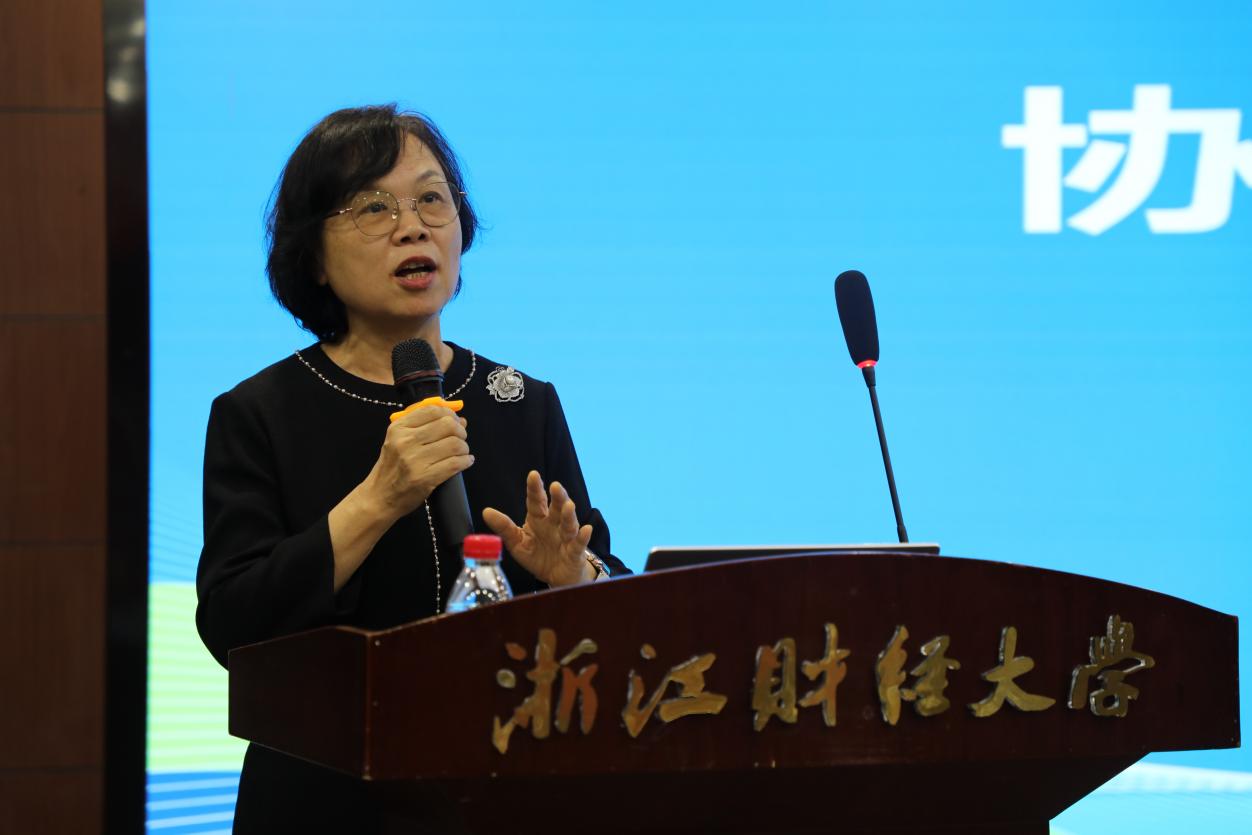 最后,浙江省总会计师协会常务副会长俞乐平进行了总结发言。她首先祝贺了本次活动的圆满举办,并指出本次活动以党建为引领,贯穿二十届四中全会精神,主题突出,专业性强,紧密围绕税务热点。接着,她对大会举办与协办单位表示了衷心感谢。她肯定了当前浙江省总会计师协会与高校产教学的深度融合,尤其是在党建交流、征文活动与社会导师联合培养等方面均形成了诸多成果。随后,她在以下三方面进行了未来展望:第一,需要充分发挥协会税务咨询专业委员会的作用;第二,需要加强学校与协会的专业融合;第三,“纳税训练营”可以在适当时机组织开展。