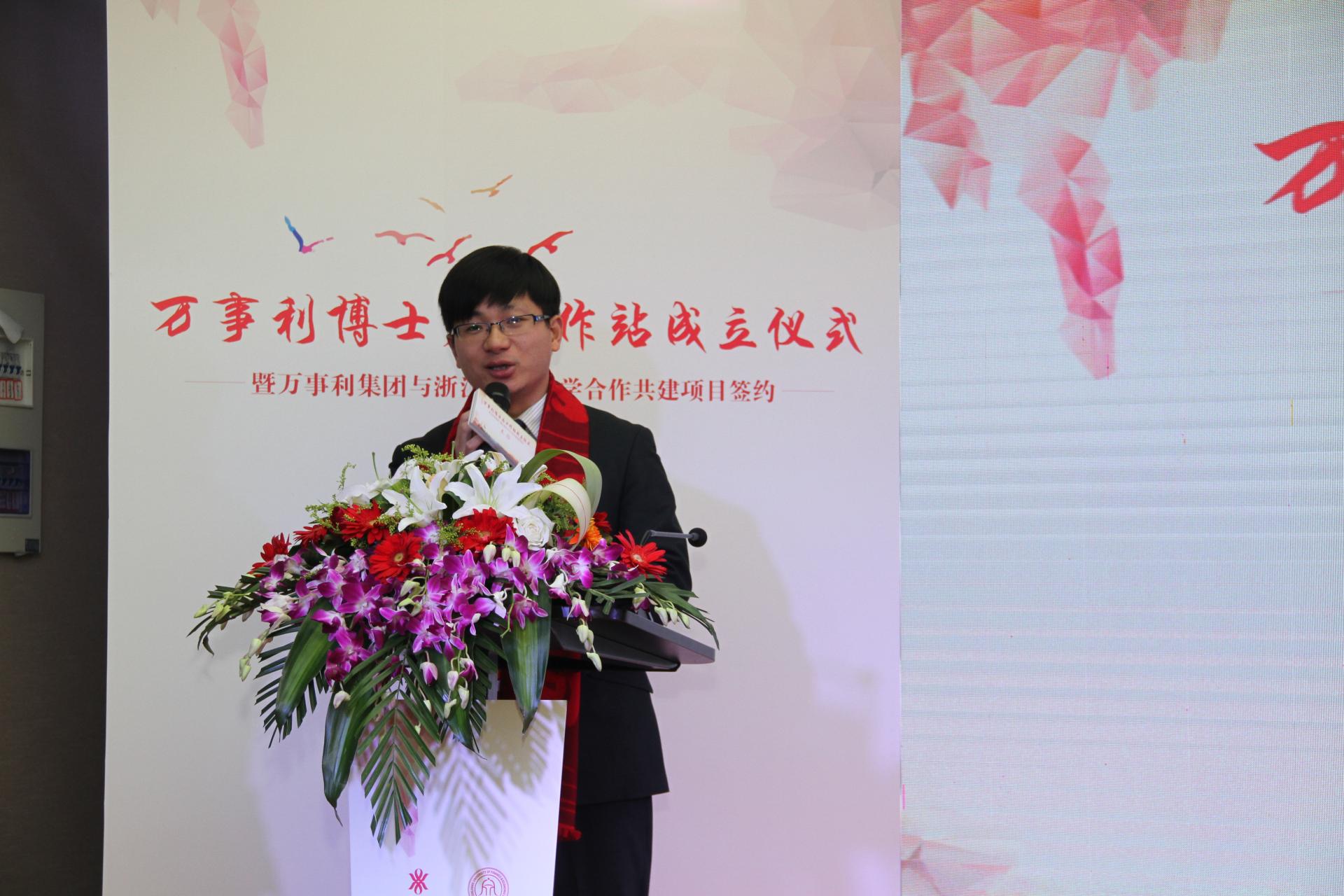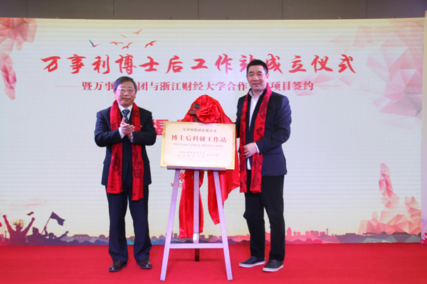 前期与万事利集团积极沟通联络的基础上,学校与万事利集团有限公司共建博士后工作站揭牌仪式在万事利科技大厦隆重举行。校长钟晓敏、万事利集团有限公司总裁李建华出席揭牌仪式。