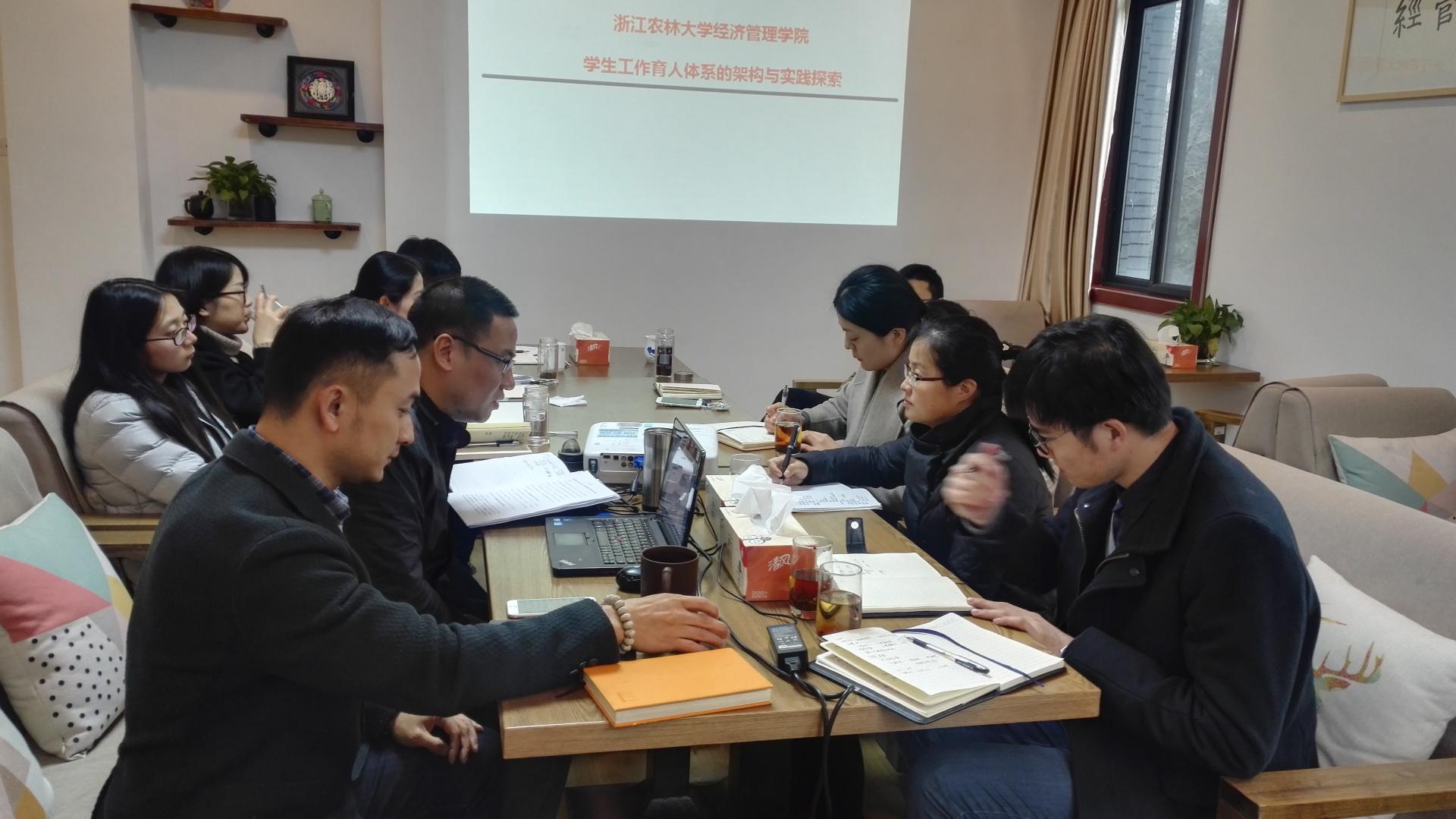 党委副书记徐丽玲率队前往浙江农林大学经济管理学院,就学生思想政治教育工作进行了专题交流学习,受到浙江农林大学经济管理学院党委副书记周凯等老师的热情接待。
