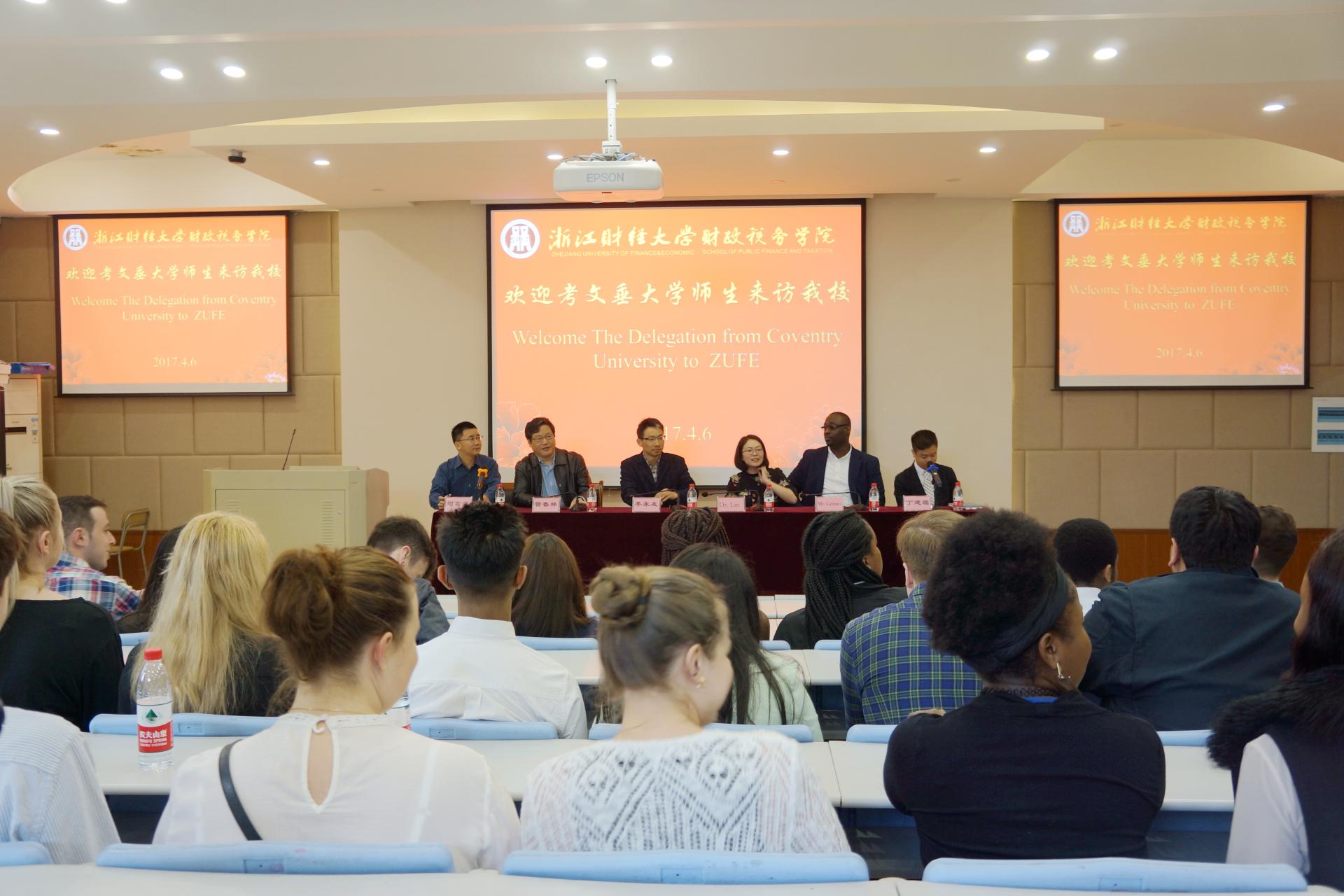。国际交流处副处长管春林、学院院长李永友、英国考文垂大学指导老师Shane Damien Henderson、Dr. Lin,财政系教师丁建福等出席了此次会议。欢迎仪式由学院副院长司言武主持,学院党委书记杨春玲、副书记徐丽玲以及部分师生代表参加了此次欢迎仪式。