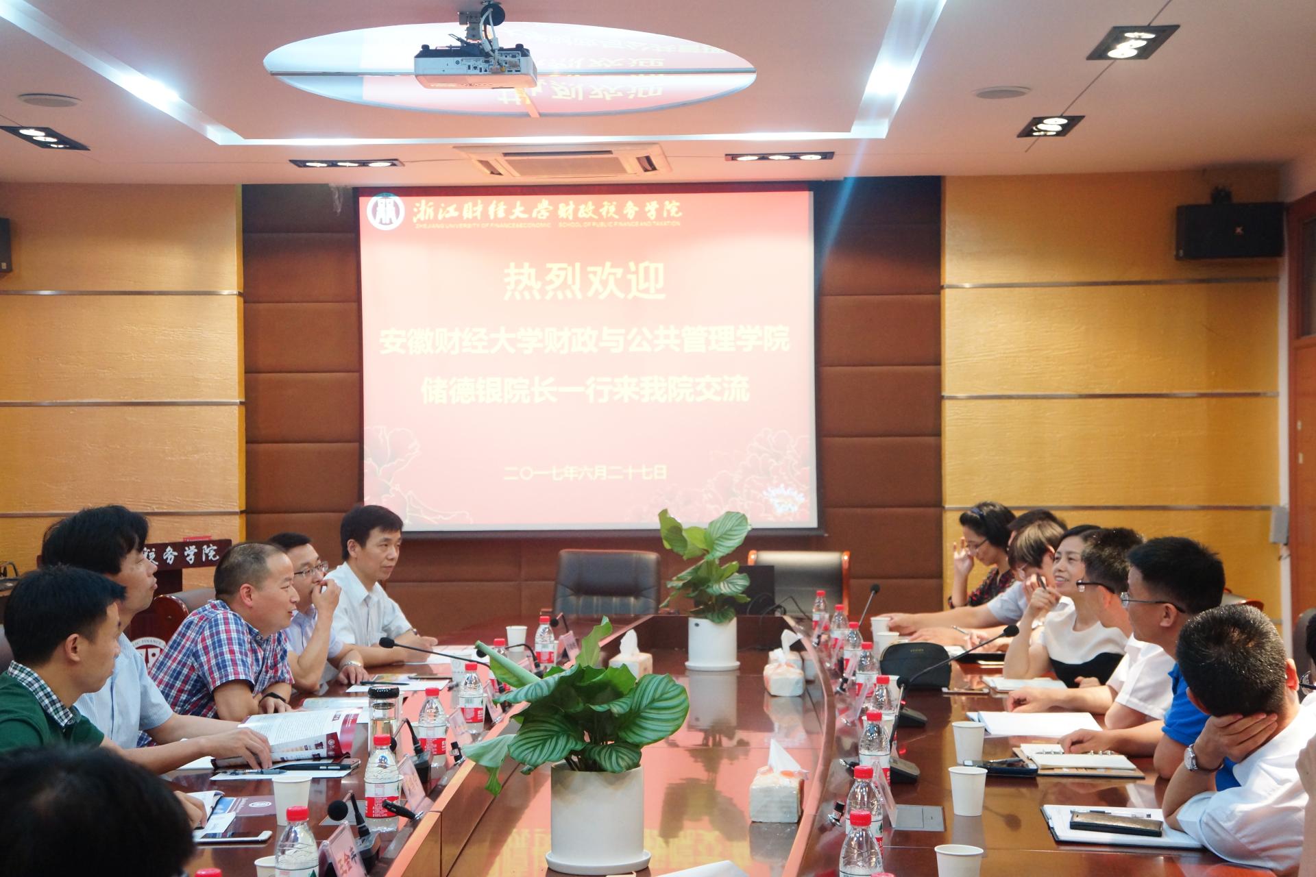 6月27日下午,安徽财经大学财政与公共管理学院储德银院长一行6人来禁漫天堂 交流,院长李永友亲切接待了客人并主持交流会。