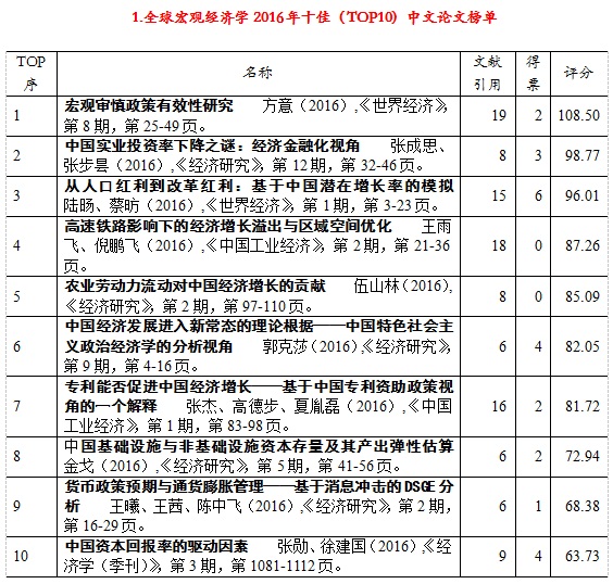 金戈教授独立撰写的论文《中国基础设施与非基础设施资本存量及其产出弹性估算》(发表于《经济研究》2016年第5期)入选《世界经济年鉴2017》“全球宏观经济学2016年十佳中文论文(TOP10)”。