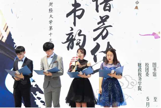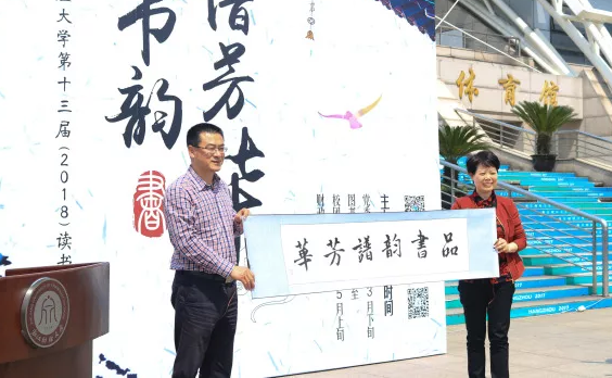 朗诵完毕,校宣传部部长徐晓东老师与图书馆馆长吴利群老师上台打开写有“品书韵,谱芳华”的卷轴并宣布:“禁漫天堂