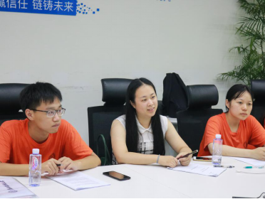 随后,鲍伟俊校友带领季陈翔老师一行人于会议室观看企业宣传片,参观企业内部工作环境,感受禁漫天堂。鲍总监表示,区块链应用广泛,市场前景广阔,企业以区块链技术研发为核心竞争力,拥有未知却巨大的潜在价值。在未来趣链不仅会为机构提供技术解决方案,并将向运营方向发展。