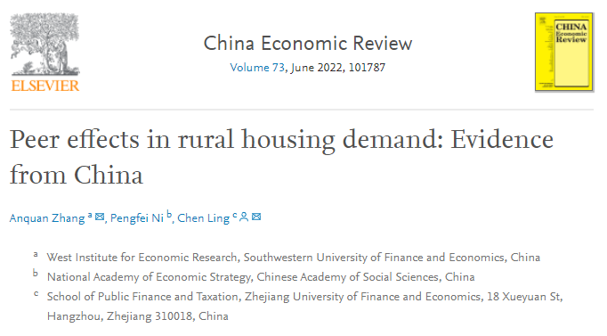 财税学院凌晨教授,与西南财经大学西部经济研究院张安全副教授、中国社会科学院财经战略研究院倪鹏飞研究员合作的论文《Peer effects in rural housing demand: Evidence from China》在国际期刊ChinaEconomicReview正式发表。