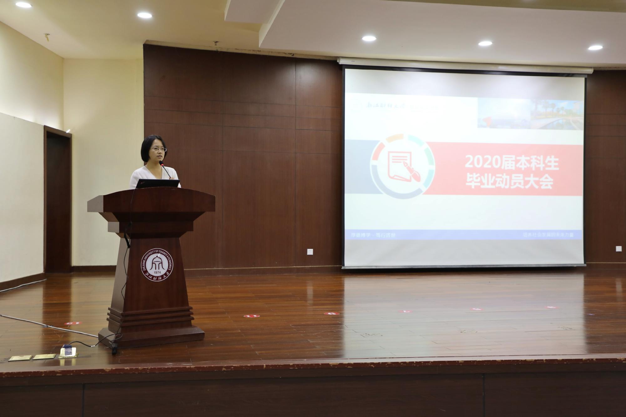 教学副院长司言武、院党委副书记徐丽玲、督导组组长骆勤出席,大会由教学秘书方梦澜主持,全体2020届毕业生参加了此次动员大会。