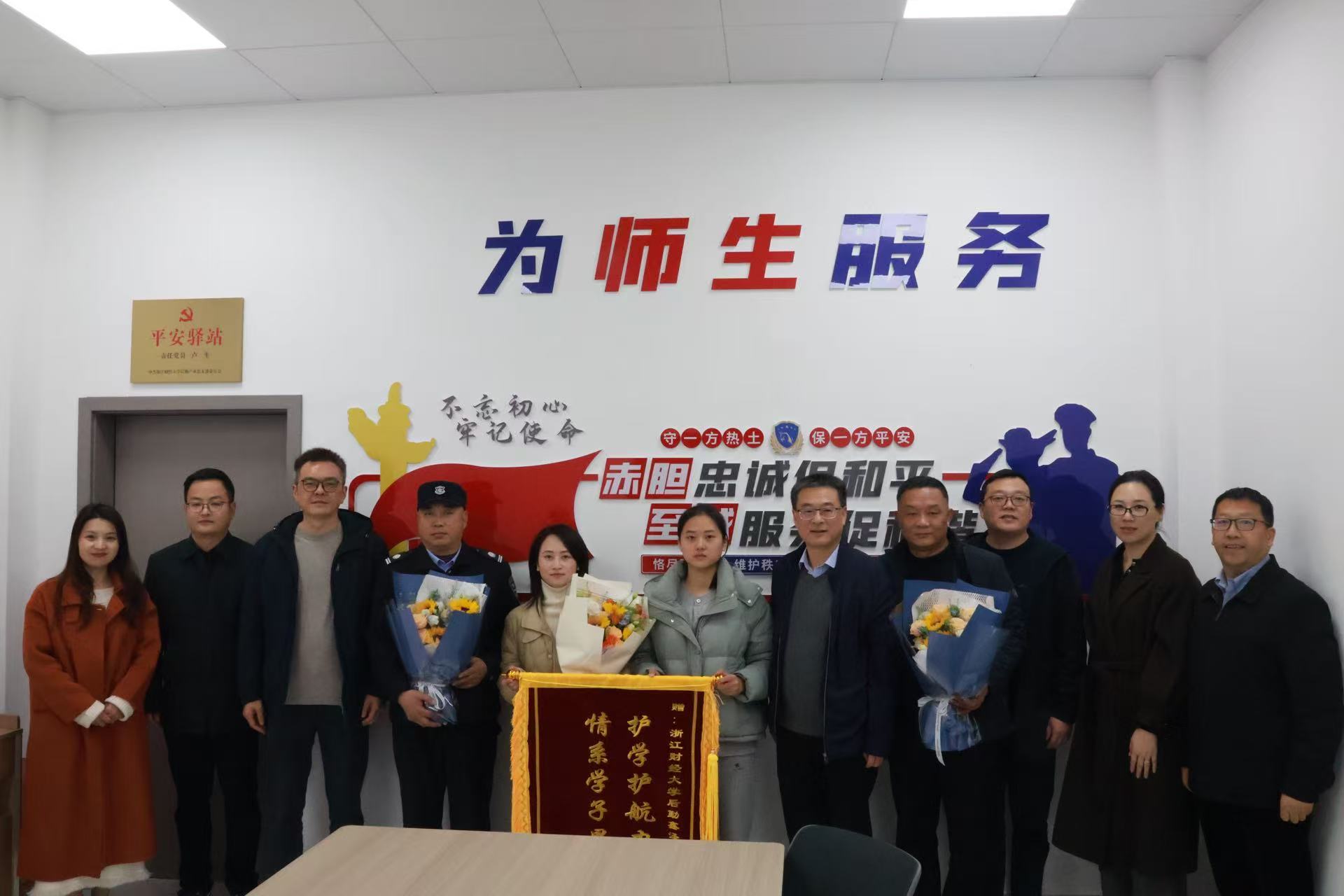 郑同学向鑫泽公司工作人员送上鲜花和锦旗,由衷感谢学校和学院对学生诉求的悉心倾听与支持,表示将铭记这份情谊,并努力将感动传递下去。