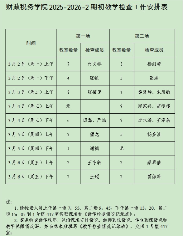 于3月2日至3月6日开展了为期一周的期初教学检查工作。