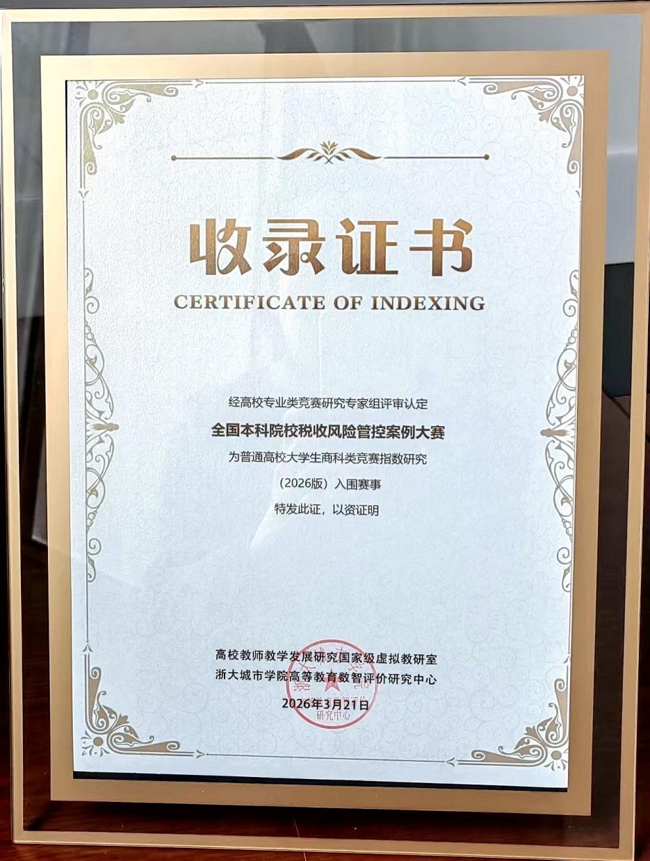 3月21日,横店2026赛事签约发布会暨第五届高校大学生竞赛与创新人才培养会议在浙江东阳顺利召开,全国本科院校税收风险管控案例大赛组委会代表出席会议。会上,大赛成功入选普通高校大学生商科类竞赛指数项目清单,这是大赛继2023年被列入《全国普通高校学科竞赛排行榜》以来获得的又一权威认可与荣誉,标志着大赛影响力的进一步提升。