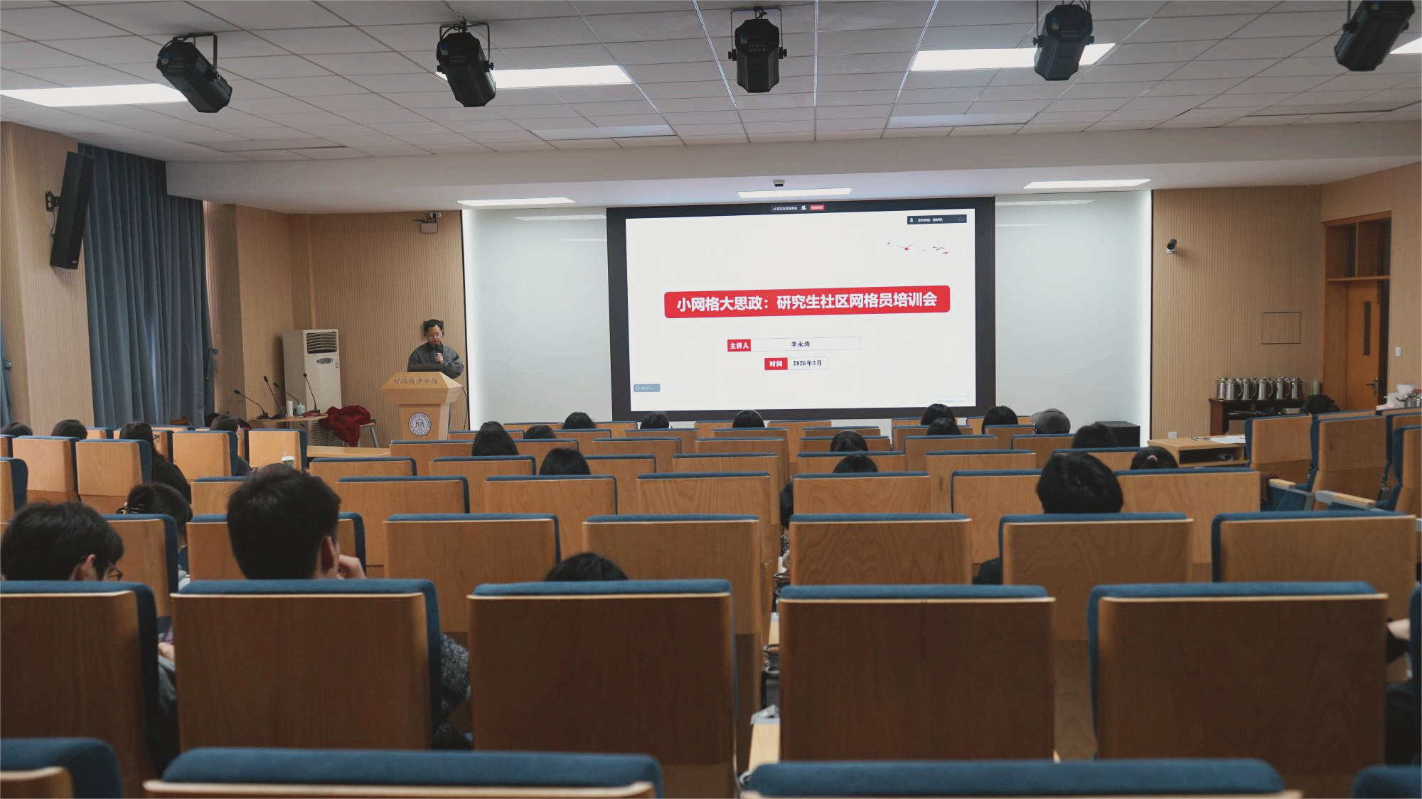 以“0.5米思政”为核心,学院精准施策,分别针对本科生、研究生五级网格员(即寝室长)开展分级分类专项培训,兼顾共性需求与群体差异,同时增设专门心理培训,全面强化其一线育人责任与综合服务能力。
