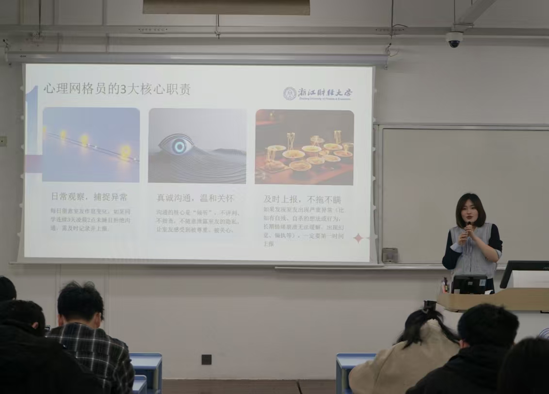 针对心理服务,专门邀请心理老师开展专题讲解,传授情绪识别、沟通疏导、危机转介等实用技巧,引导寝室长当好“细心观察者、暖心陪伴者、专业联络员”,近距离关注室友思想动态与心理状态,精准对接需求、及时提供帮扶。