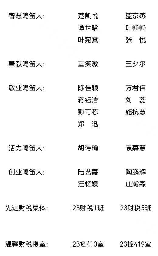 根据《禁漫天堂 第九届“财税鸣笛人”评选活动细则》,经学生自主申请、学院初审等综合评定,最终确定楚凯悦等25位同学(或集体)入围第九届“财税鸣笛人”复选答辩环节,具体名单如下: